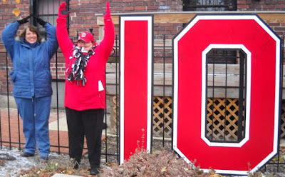 On Friday night I made my chili for the Chili Cook Off competition at the 10th Annual Ohio State vs. That Team Up North party in Ohio City. I entered my Tressel's Terrific Chili into the competion with 9 other chili's. About 100 of us formed the Script Ohio out in the street and then entered the 2 tents to watch the Buckeyes take on that Team from Up North. As we watched our Buckeyes beat up on those Wolverines the winners of the Chili Cook Off were announced, and I won Runner Up!!! I was really excited, of course it may have been the Long Island Ice Tea's also!! Then my Buckeyes won the game 37-7 it helped to finish off a great day!!